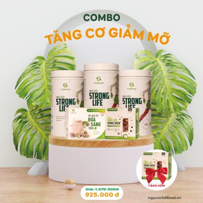 Ngũ cốc ăn sáng tiện lợi , gạo lứt rong biển và ngũ cốc Stronglife là combo tốt nhất cho những người tập luyện thể thao, muốn tăng cơ, giảm mỡ.Vì stronglife không đường nên nếu muốn ngon hơn bạn có thể pha kèm thêm gói Bột ngũ cốc bữa sáng tiện lợi, tỉ lệ ngũ cốc Stronglife nên cao hơn. Kết hợp cùng 1 ly ngũ cốc là có một bữa sáng đầy đủ dinh dưỡng hoặc 1 bữa ăn nhanh trước và sau khi tập thể thao rồi.